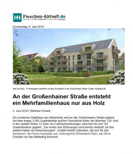 Pieschen-aktuell Juni 2019 | “An der Großenhainer Straße entsteht ein Mehrfamilienhaus nur aus Holz” Ein modernes Stadthaus aus Massivholz.. Jetzt lesen |
