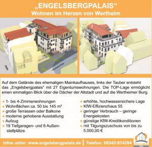 Wertheimer Anzeigenblatt September 2019/November 2019 | “Engelsbergpalais – Wohnen im Herzen von Wertheim” Auf dem Gelände des ehemaligen Mainkaufhauses..Jetzt lesen |
